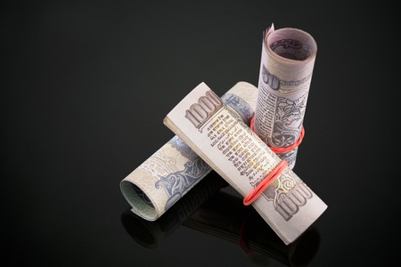 Cash with Indian rupees in various denominations of currency banknotes for business investments economic development
