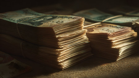 A worn banknote stack dim cinematic light warm shadowed scene conveying quiet tension and value