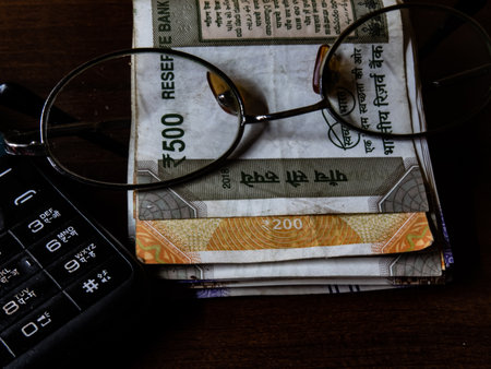Indian money, rupee, paper banknotes, cash. Indian money for doing business, traveling