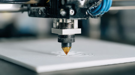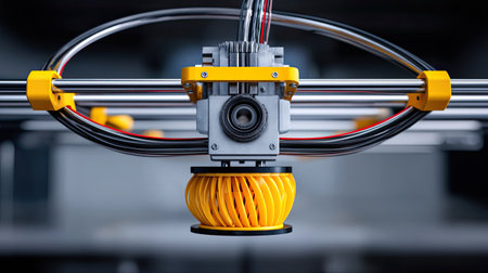 Witness advanced 3D printing technology at work, highlighting precision and innovation in the manufacturing process with an intricate close-up of the printing nozzle.