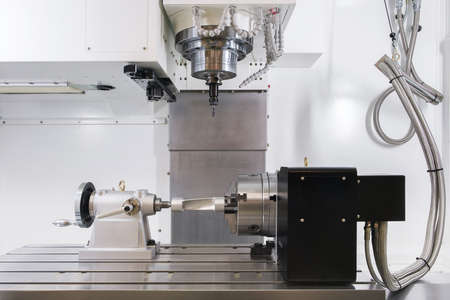 Manufacturing CNC professional lathe machine, Industrial concept.