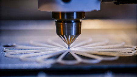 A close-up view of a 3D printer nozzle extruding filament onto a surface, showcasing the precision and intricacy of the layering process in modern manufacturing.