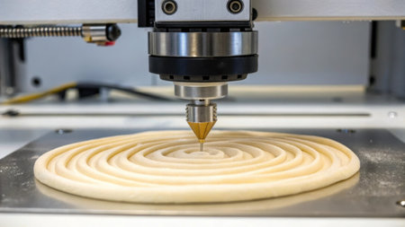 Food printing machine creating concentric circles of dough