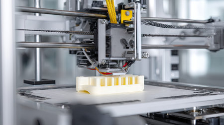 A cutting-edge 3D printer crafting a detailed object, showcasing innovation, precision, and advanced technology in modern manufacturing.