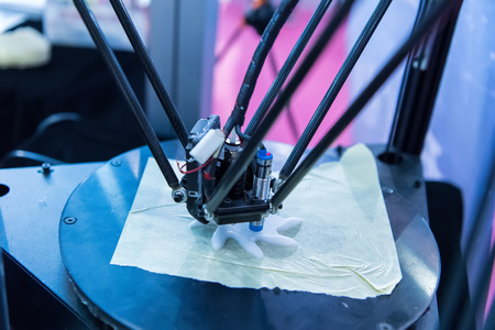 The 3D printer prints the model out of white plastic. modern technology.