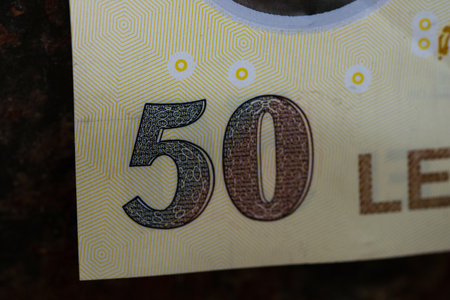 macro close up of 50 Malaysian ringgit cents. The bank negara fifty cent coin of Malaysia. Sharp detailed capture of the Malaysia character on the RM 50 sen coin. microscopic picture of this coin