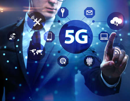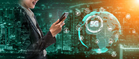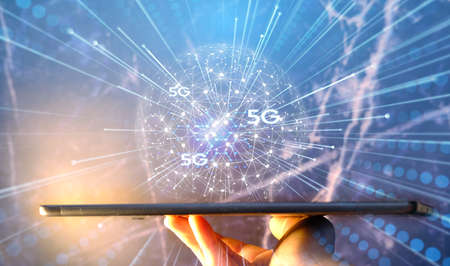 5G Fast Wireless internet connection Communication Mobile Technology concept.