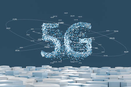5g mobile telecommunication, communication technology, wireless internet and speed phone network symbol concept. Futuristic abstract 3d rendering illustration.