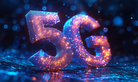 A glittering 5G sign adorned with golden lights, symbolizing high-speed connectivity and modern technology.