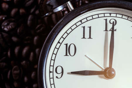 Life time concept close-up clock is on the coffee beans