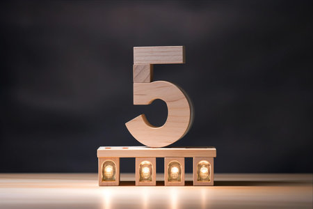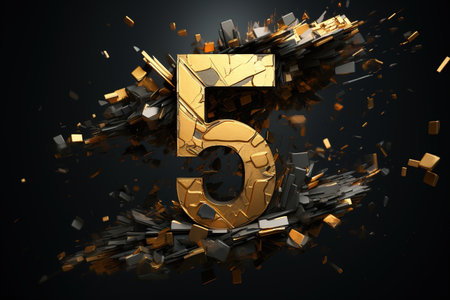 A golden number 5 on a dark textured background with red accents