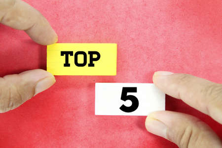 hand holding a wooden cube with the word Top 5