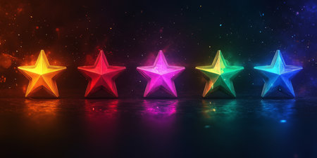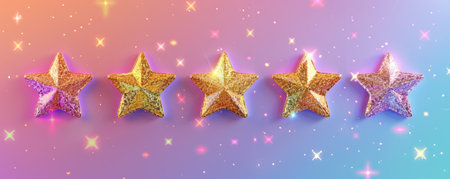 Five glittering stars on a colorful gradient background.