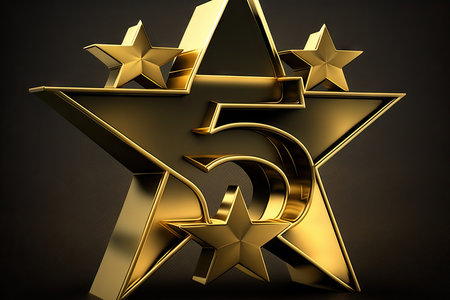 Gold star with the number five on a black background