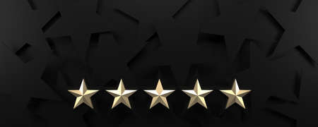 Five yellow golden stars for excellent evaluation from client and customer satisfaction concept by 3d render illustration.