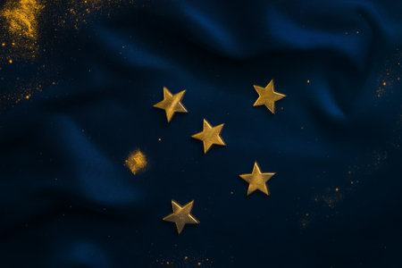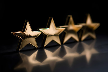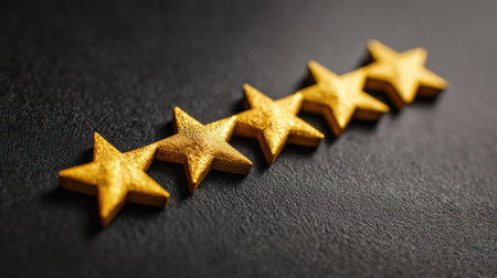 Bright golden stars shine on a smooth dark surface reflecting achievement and quality.