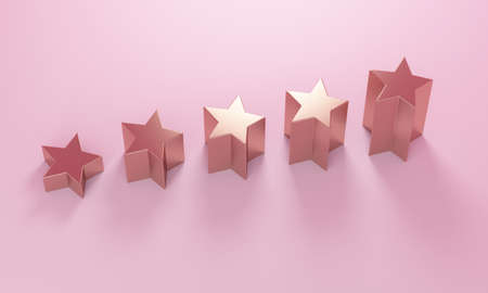 Pink studio background with five stars sign. Best rating. 3d rendering
