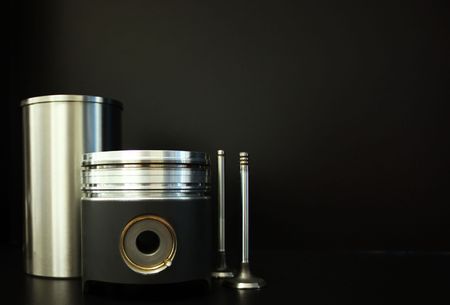 Mechanical new details on black background for auto service and car repair. disassemble engine block vehicle. Motor capital repair. Car service concept.