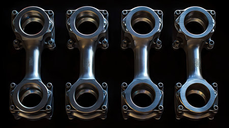 This high-resolution image showcases a close-up view of precision engine components featuring a shiny metallic finish, highlighting intricate details and craftsmanship.