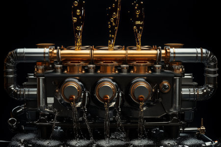 Unveiling the intricate world of industrial systems, a captivating macro shot showcases the interwoven complexity of a valve assembly, emphasizing the vital role of meticulous maintenance.