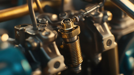 A striking close-up view of a metallic engine component showcasing intricate details and industrial design. Perfect for technical and automotive projects.