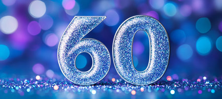 Radiant Silver Number Sixty Sparkles on a Blue Bokeh Background Celebrating Six Decades of Joy