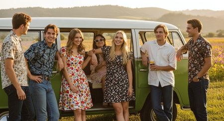 Nostalgic vibes: people embracing the eclectic fashion of the 1970s, a journey back in time through groovy styles, disco glamour, and free-spirited bohemian expressions