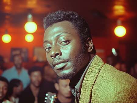 Historical lens: portrait of black individuals from the 1960s and 1970s, essence of the era, reflecting the resilience, style, and cultural significance within the authentic atmosphere of their time.
