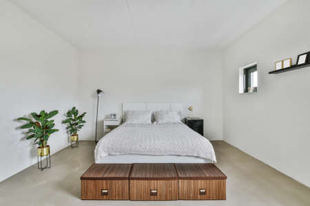 bed in simple bedroom interior