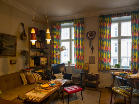 Step into the past with this cluttered, yet charming living room from a 1960's Copenhagen apartment. Experience the retro ambiance of a bygone era.