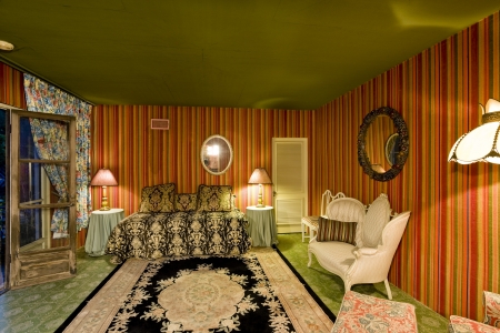 Panorama of small room with vintage furniture and decorations