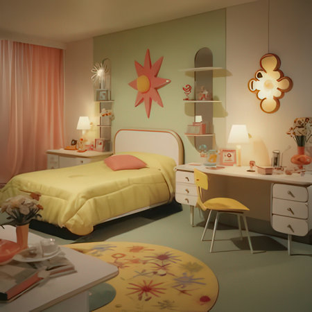 Interior of a children's bedroom. 3D render. Vintage.