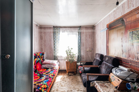 Russia, Moscow- June 12, 2019: interior room apartment. standard repair decoration in hostel