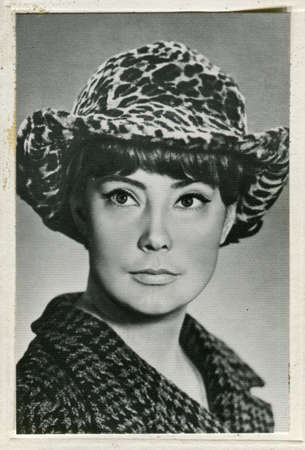 USSR - CIRCA 1960s: studio Portrait of a beautiful young woman in a hat, circa 1960s