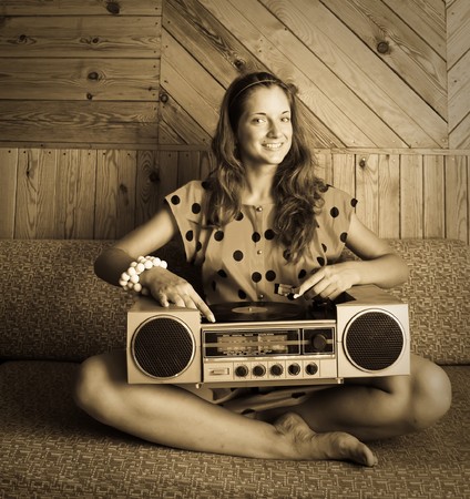 Retro - Monochrome portrait of a young woman in the late 1960s - The Swinging Sixties.
