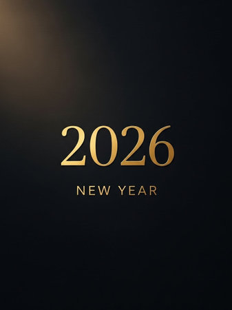 New Year 2026 dark background. Number of the coming year in Christmas decoration.