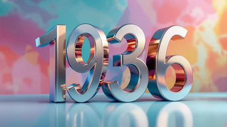 Vibrant metallic 1936 numbers against colorful abstract background.