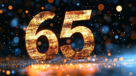 Shining Golden Number 65 on a Sparkling Celebration Background for Anniversary or Birthday