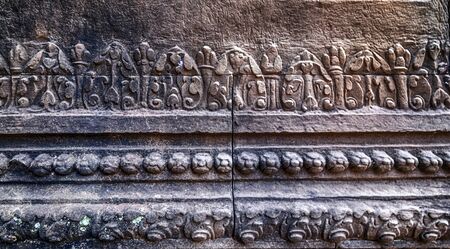 Close up detail of stone carving on the wall of an ancient temple