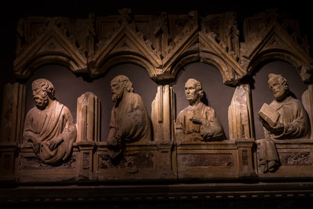 Alexandria, Egypt - November 03, 2021: Ancient Exhibits in the Alexandria National Museum - Marble and Stone Statues, Books, Medieval Decoration and Roman Tableware