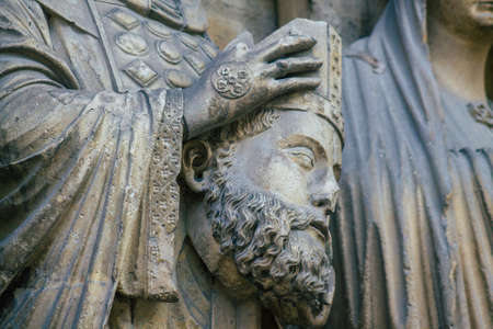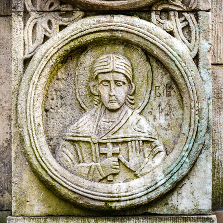 Stone carving on the wall of an ancient church, close-up