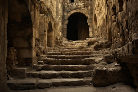 Mysterious Ancient old stairs. Long architecture. Generate Ai