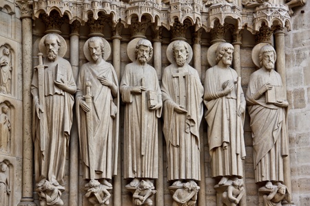 Saint sculptures at the Notre Dame Cathedral, Paris