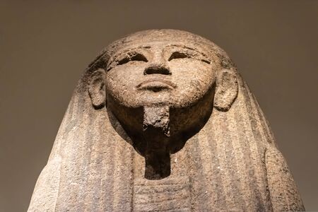 Cairo, Egypt - November 02, 2021: Close up view to the Ancient Stone Statues in the Cairo Egyptian Museum, the oldest archaeological museum in the Middle