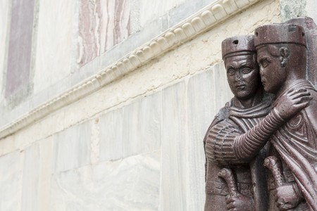 Ancient architecture background or template with copyspace, featuring part of the Portrait of the Four Tetrarchs, Saint Mark's Basilica, Venice, Italy