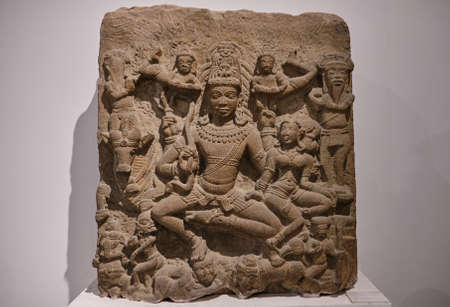 New Delhi / India - September 26, 2019: Stone relief of Hindu god Shiva in the National Museum of India in New Delhi