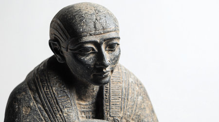 Statue of an ancient Egyptian Pharaoh isolated on a white background.