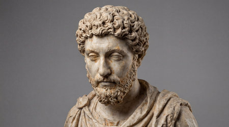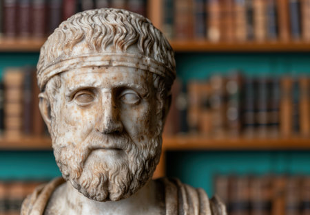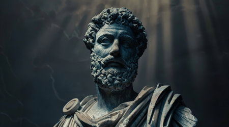 Weathered stone bust of an ancient philosopher