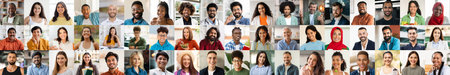 Collage mosaic of many multiracial people of different age and ethnicity faces headshots close up portraits. Lot of happy mixed multicultural diverse business people group photo collection concept.
