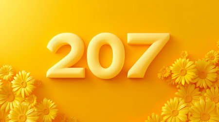 Vibrant Yellow Floral Frame The Number 207 on a Sunny Yellow Background for Special Occasions